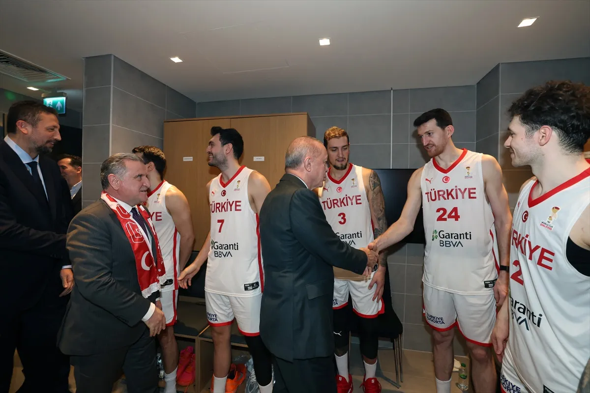 A Milli Basketbol Takimi’nin sahada gosterdigi buyuk mucadele ve aldigi galibiyet sonrasi soyunma odasi sicak bir bulusmaya sahne oldu. Cumhurbaşkanı Recep Tayyip Erdogan, milli takim oyuncularini tebrik etmek icin soyunma odasina girdi ve tum takima moral veren samimi bir konusma yapti.