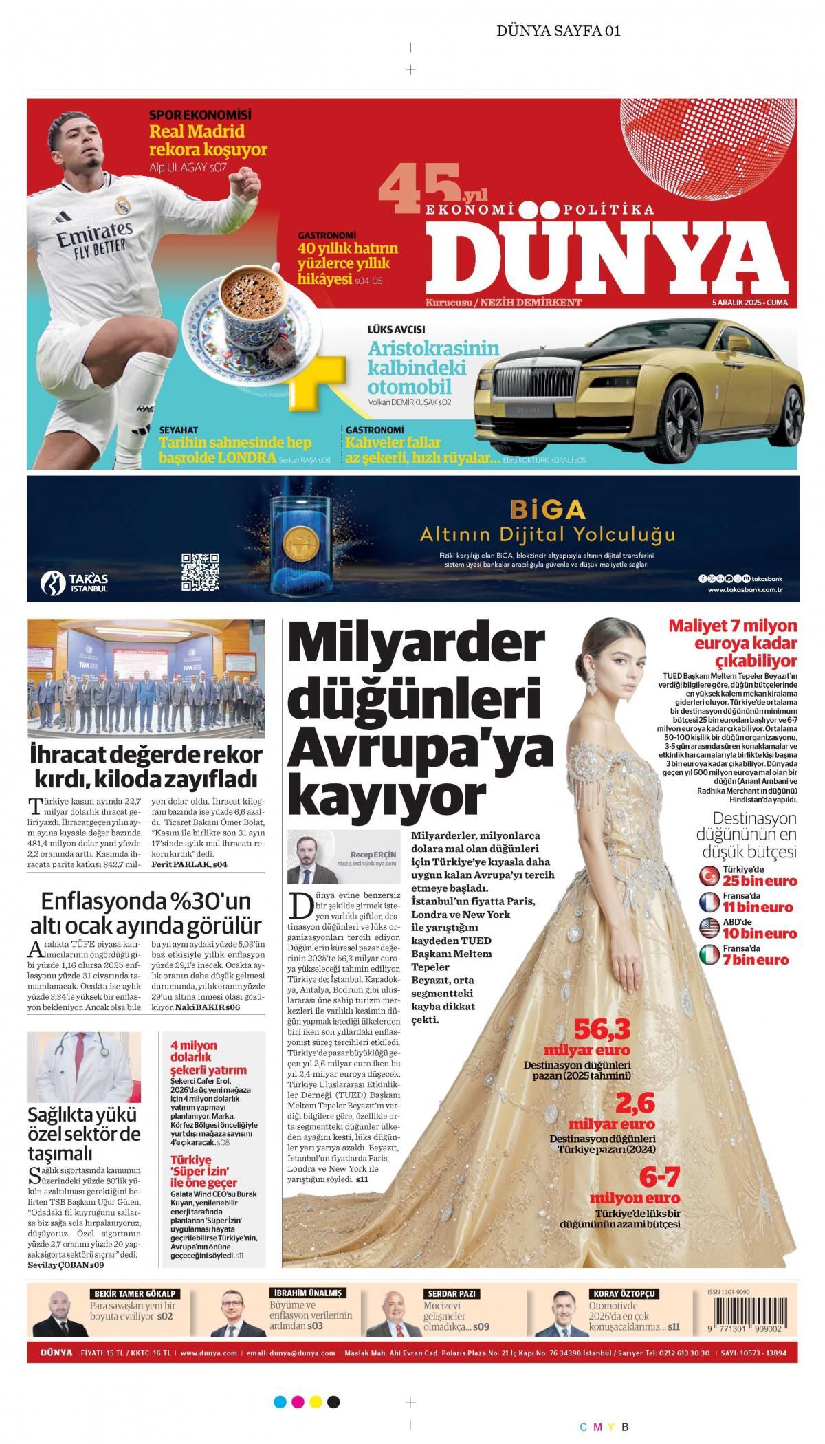 Dünya Gazetesi 5 Aralık 2025 Günü Manşeti