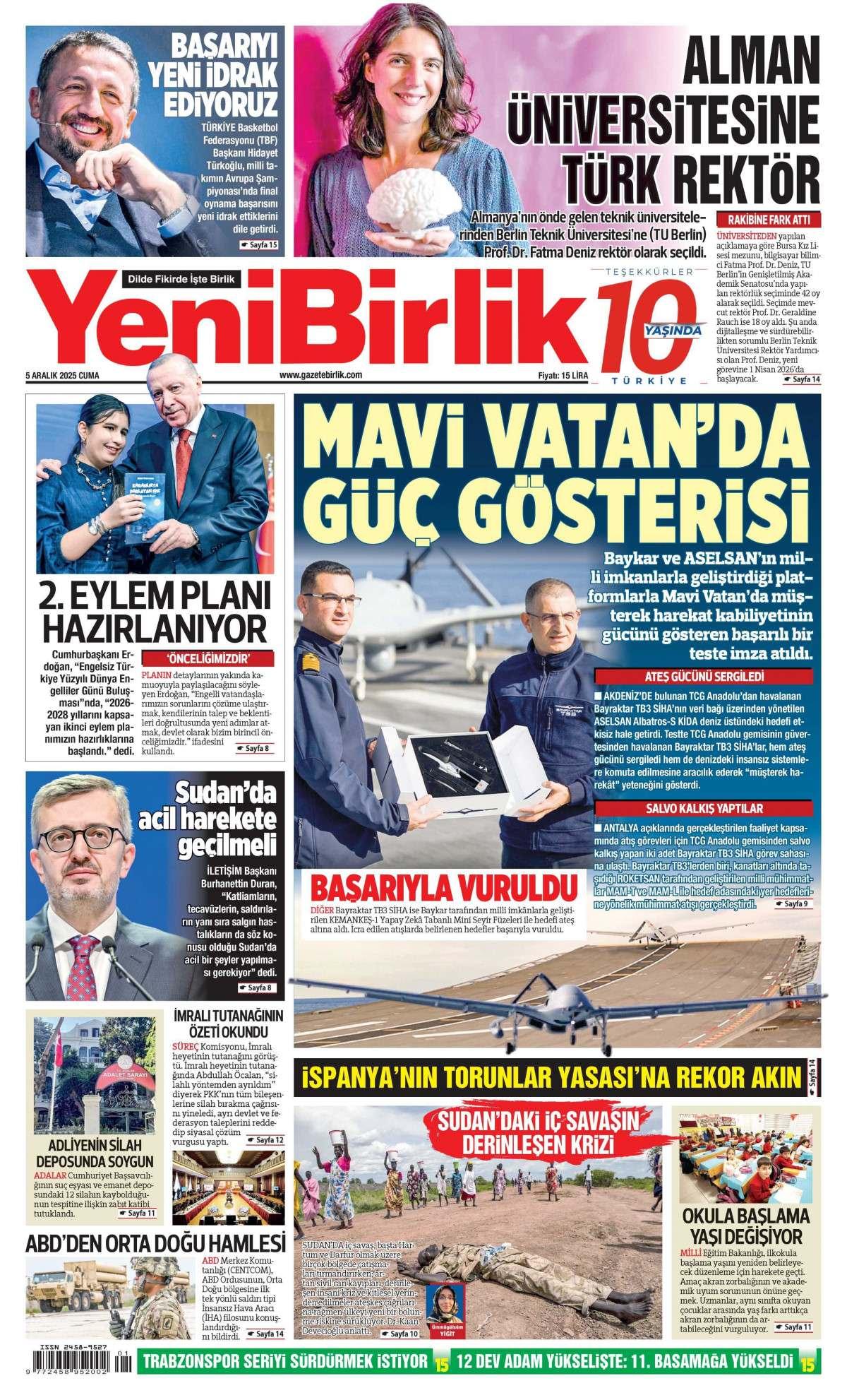Yeni Birlik Gazetesi 5 Aralık 2025 Günü Manşeti